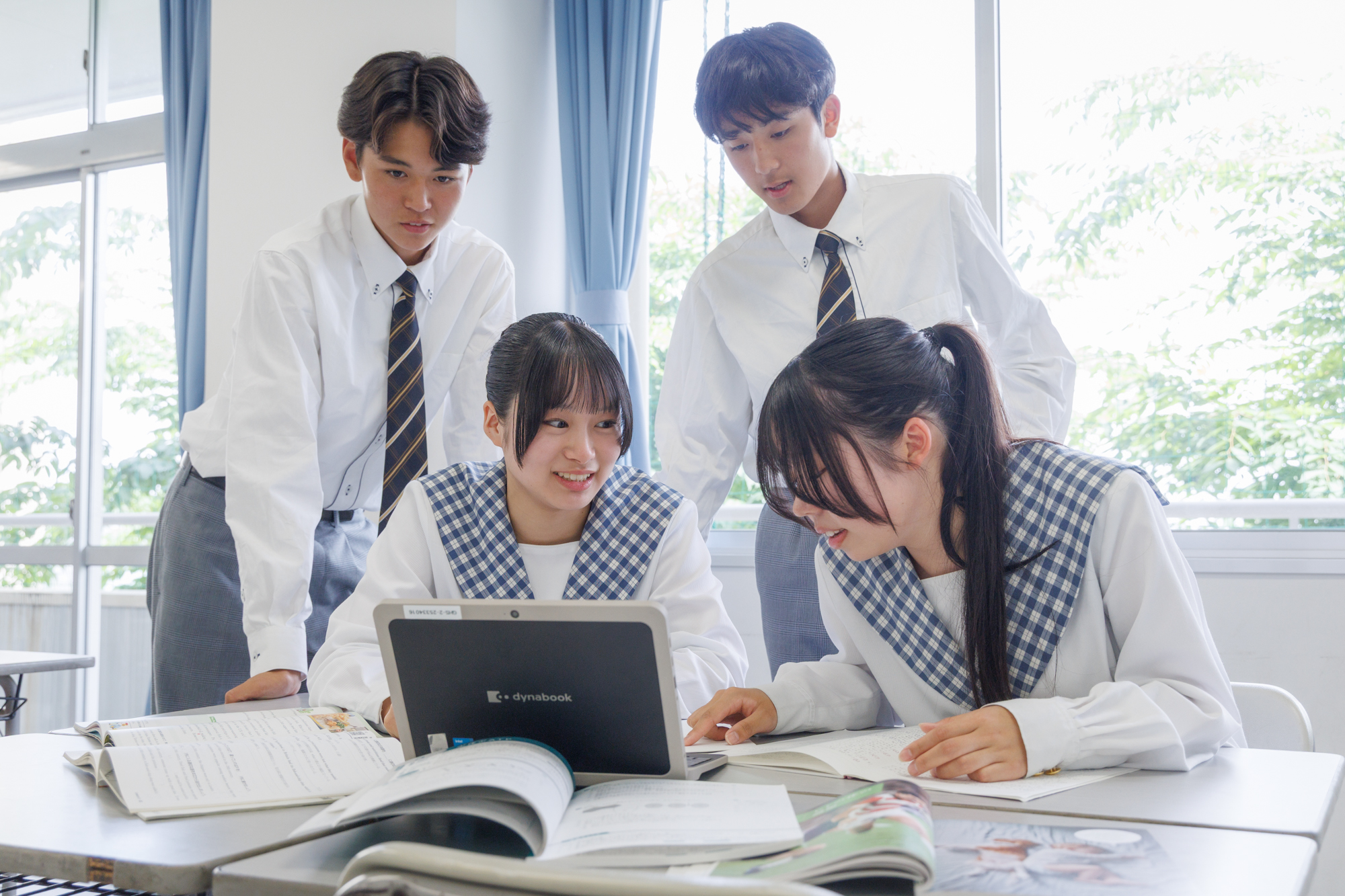 文系・理系に分かれ、専門的な学びが始まります。学習用端末の長所を活かした効率的な学びで「文武両道」の実現を図ります。さらに、大学・企業見学を通して自分の将来像を具体的に描き始めます。